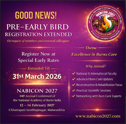 NABICON 2027 is envisioned as a premier academic congregation bringing together burn surgeons, plastic surgeons, intensivists, academicians, researchers, nurses, allied health professionals, and postgraduate students on a single vibrant platform.